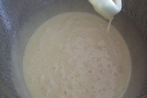 2. Add the eggs one by one and beat until light and fluffy. Beat until there are air bubbles.