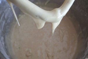- Add the eggs one by one until light and fluffy. Beat until there are air bubbles.