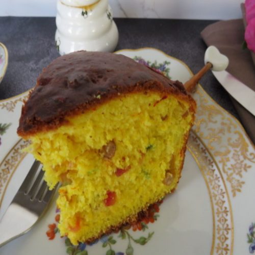 Cornish Saffron Cake is originally from Cornwall, England as the name suggests. Although it is called a cake, it is usually baked as individual buns or in one large loaf tin to be called a cake. I have used a round 8” baking tray which is why it is a cake. Cornish Saffron Cake is a rich, moist, and full-bodied cake made with butter, eggs, mixed fruit, and of course, saffron and leavened with yeast. It has the texture of a bread and is creamed to appear to be a cake.
