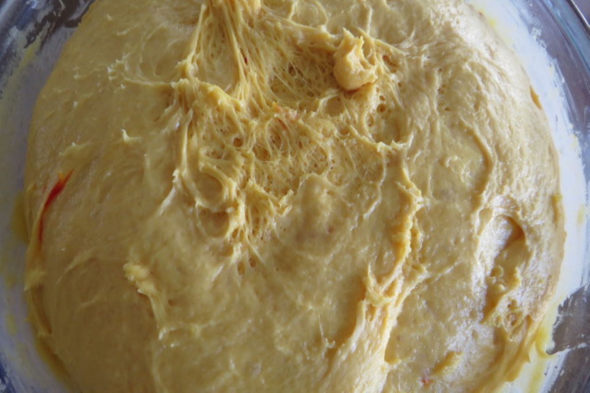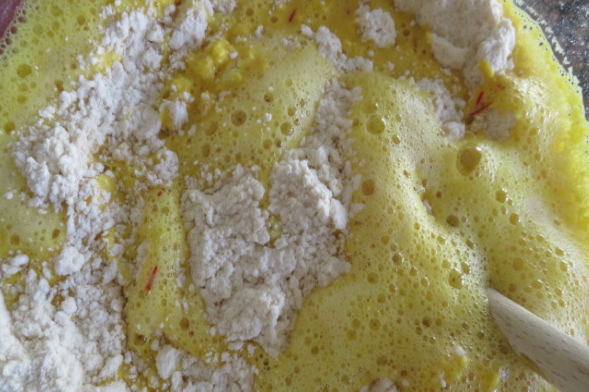 - Add the saffron water to the milk-yeast mixture.