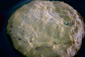 - Pre-heat oven to 4000F. Grease an 8″ round tray.